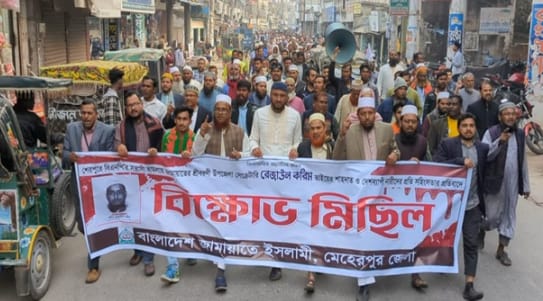 মেহেরপুরে জামায়াত ইসলামীর বিক্ষোভ মিছিল।